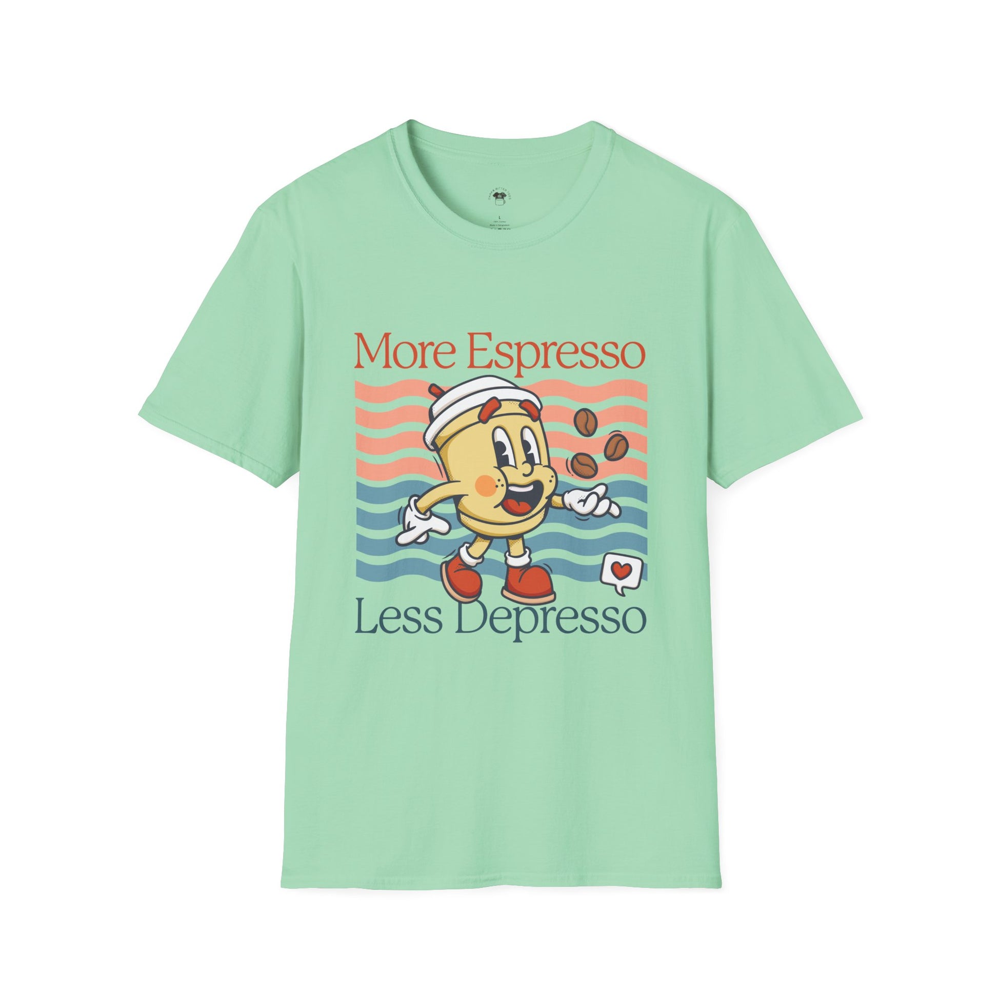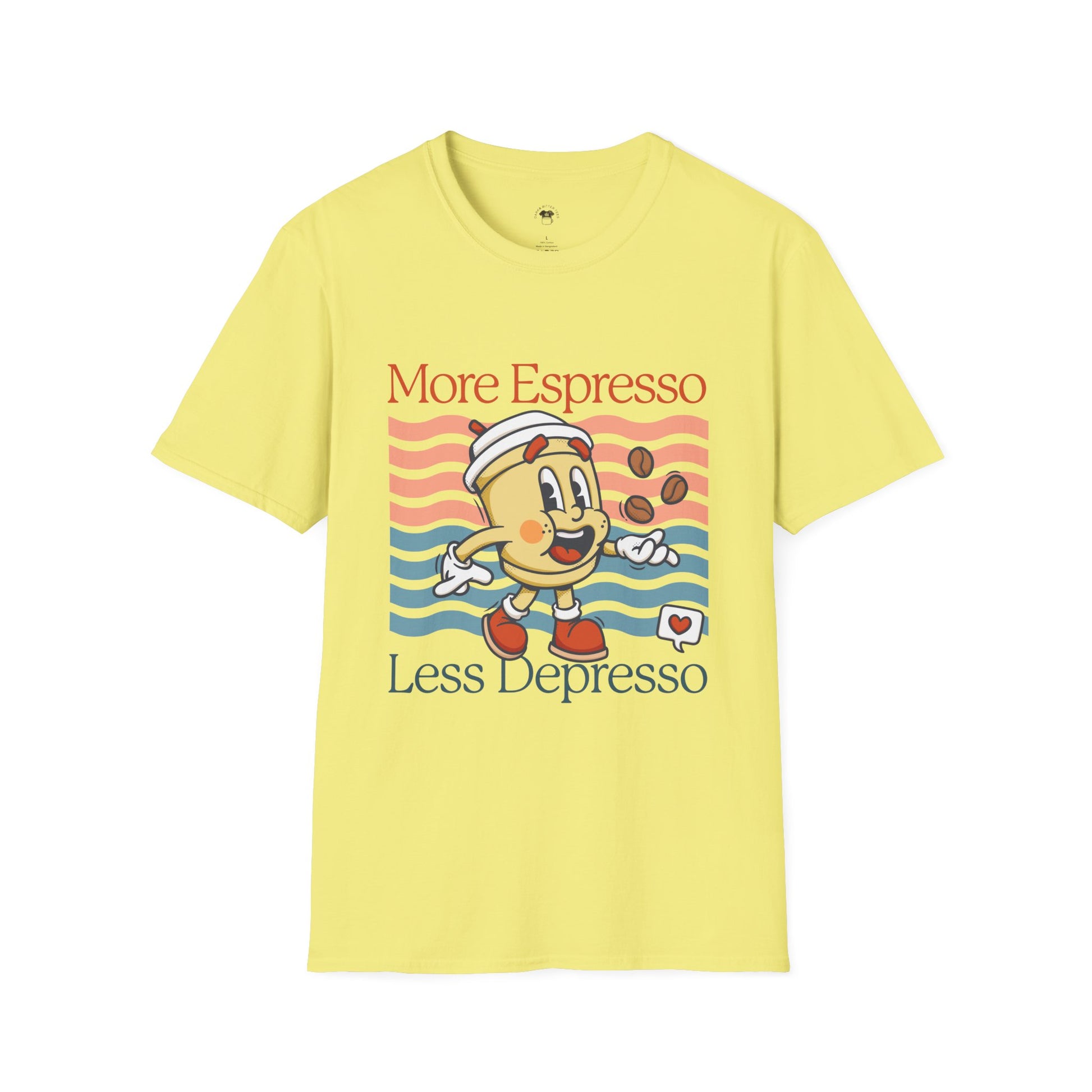 More espresso less depresso, Coffee Lover Unisex T-Shirt, Funny Coffee Tee, Cute Gift for Baristas, Coffee Obsessed Apparel, Casual Everyday Wear