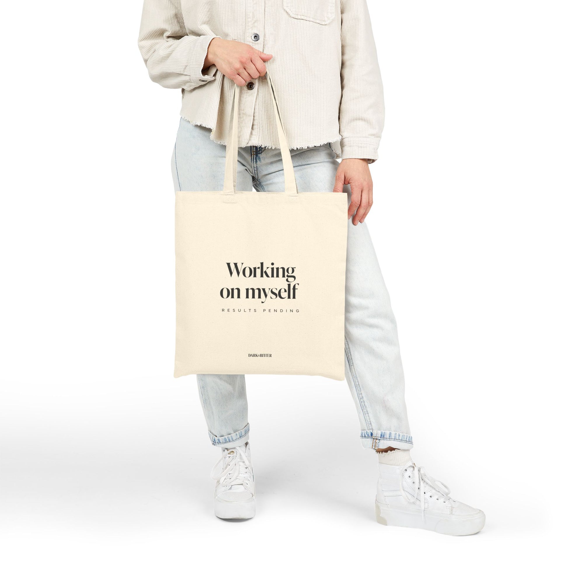 Think of it as a functional coping device: for groceries, books you swear you’ll read, or the emotional weight of existing. No slogans screaming for attention, no forced optimism—just sharp, understated honesty in bag form. It looks just as good slung over your shoulder in public as it does sitting by the door while you debate going out at all.
